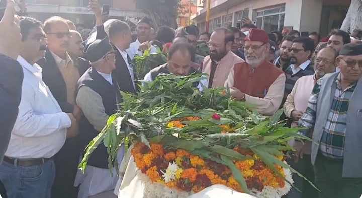 अंतिम संस्कार से पहले उनके घर से लेकर श्मशान घाट तक अंतिम यात्रा भी निकाली गई, जिसमें बड़ी संख्या में लोग शामिल हुए. राजनीतिक दलों के कई दिग्गज नेता भी दिवाकर भट्ट को श्रद्धांजलि देने हरिद्वार पहुंचे थे. मुख्यमंत्री पुष्कर सिंह धामी की ओर से जिलाधिकारी मयूर दीक्षित और एसएसपी प्रमेंद्र सिंह डोबाल ने उनके प्रार्थिव शरीर पर पुष्पचक्र अर्पित कर श्रद्धांजलि दी.