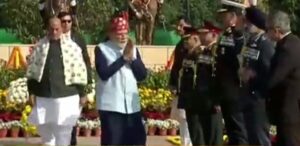 प्रधानमंत्री नरेंद्र मोदी ने रिपब्लिक डे परेड से पहले कर्तव्य पथ स्थित वॉर मेमोरियल पर जाकर देश के शहीदों को श्रद्धांजलि दी. उन्होंने शहीदों के बलिदान को याद कर उनकी शहादत को नमन किया. इस दौरान प्रधानमंत्री के साथ रक्षा मंत्री राजनाथ सिंह भी मौजूद रहे.