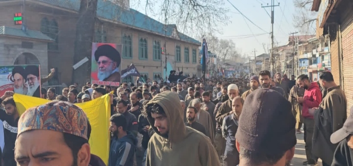श्रीनगरः जम्मू-कश्मीर में ईरान के सर्वोच्च नेता अयातुल्लाह अली खामेनेई की मौत के खिलाफ बड़े पैमाने पर विरोध प्रदर्शन शुरू हो गए हैं. रविवार को श्रीनगर के लाल चौक स्थित घंटा घर पर सैकड़ों प्रदर्शनकारी जमा हुए और खामेनेई की मौत पर दुख जताया. घाटी के पुलवामा, बड़गाम और अन्य जिलों में भी विरोध प्रदर्शन हुए. शोक मनाने वाले लोगों ने हाथों में खामेनेई की तस्वीरें ले रखी थीं. वे अमेरिका व इजरायल के खिलाफ नारे लगा रहे थे.