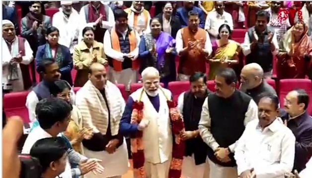एनडीए संसदीय दल की बैठक में पीएम मोदी को पहनाई गई माला, भारत-US ट्रेड डील के लिए PM मोदी का जताया आभार