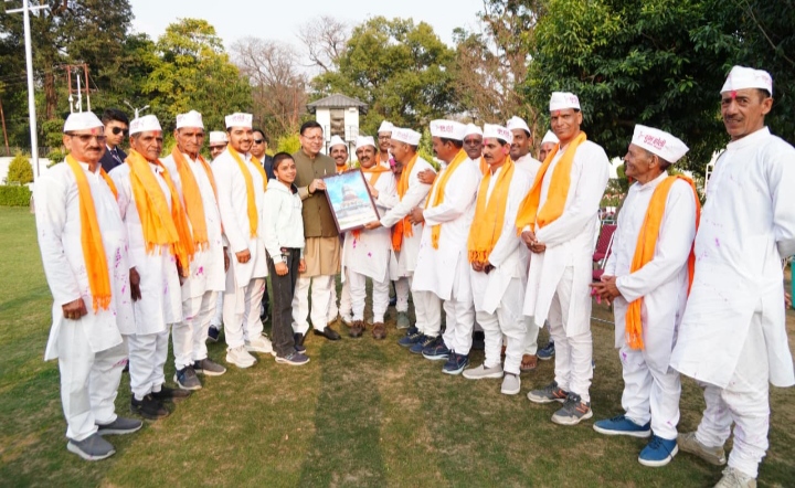 CM धामी को होली की शुभकामनाएं देने चंपावत से आये होल्यारे, सीएम के सामने गाए होली के गीत, CM ने की सुख-समृद्धि की कामना